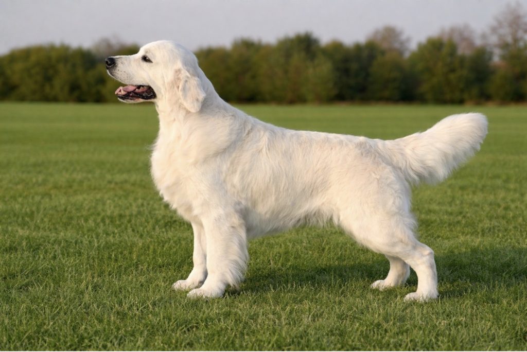 He is a well-structured male with a beautiful blocky head, rich expression, and a thick, luxurious cream coat. Goose carries himself with confidence while maintaining the soft, classic look the English Cream Golden Retriever is known for.
