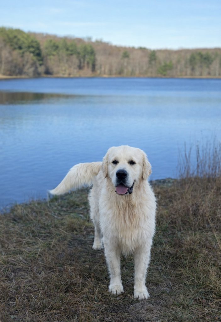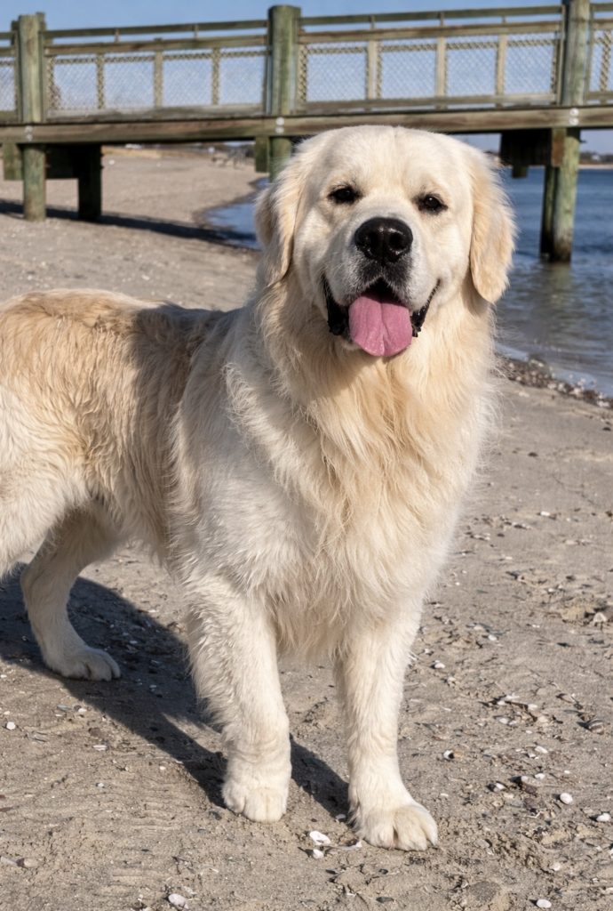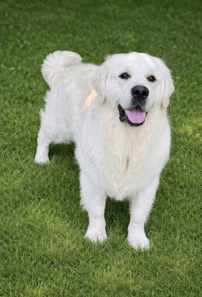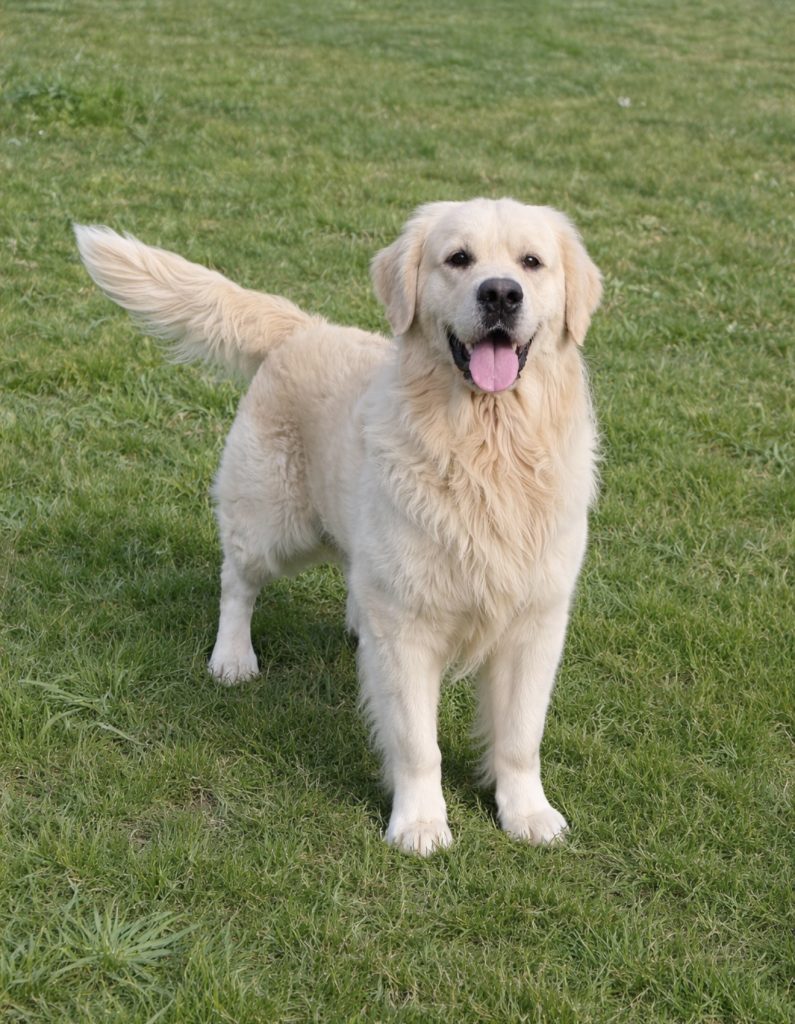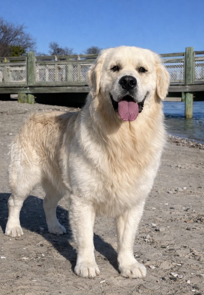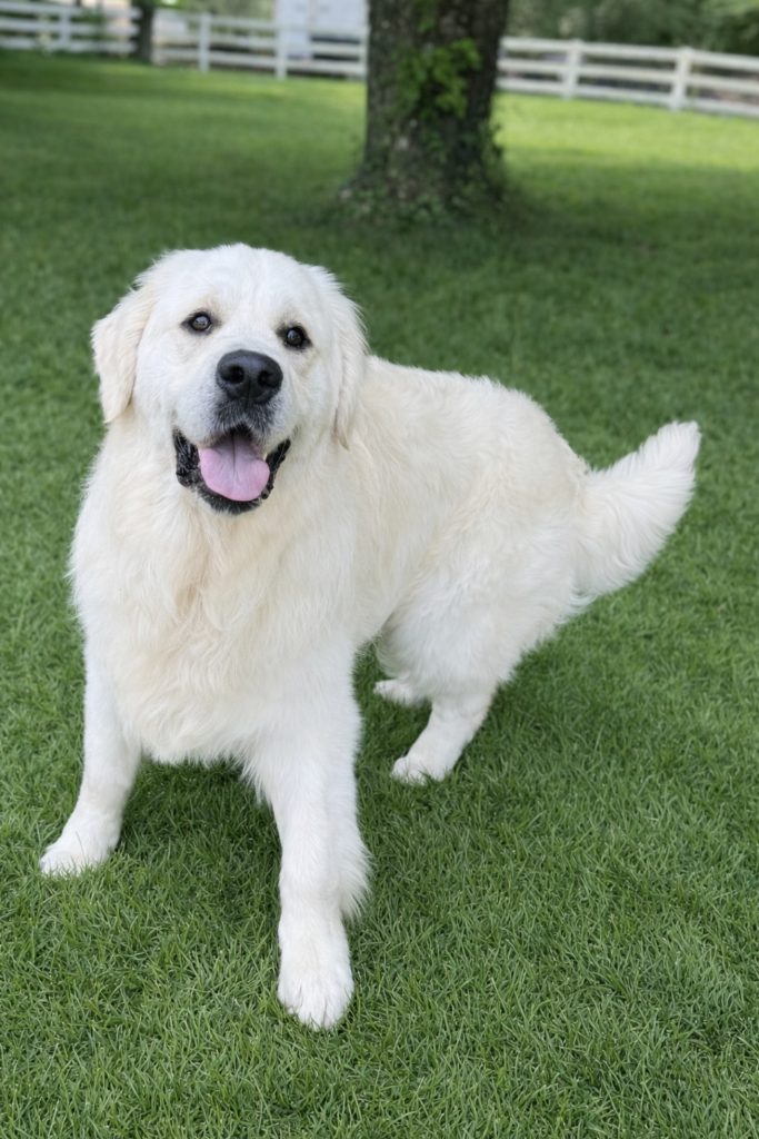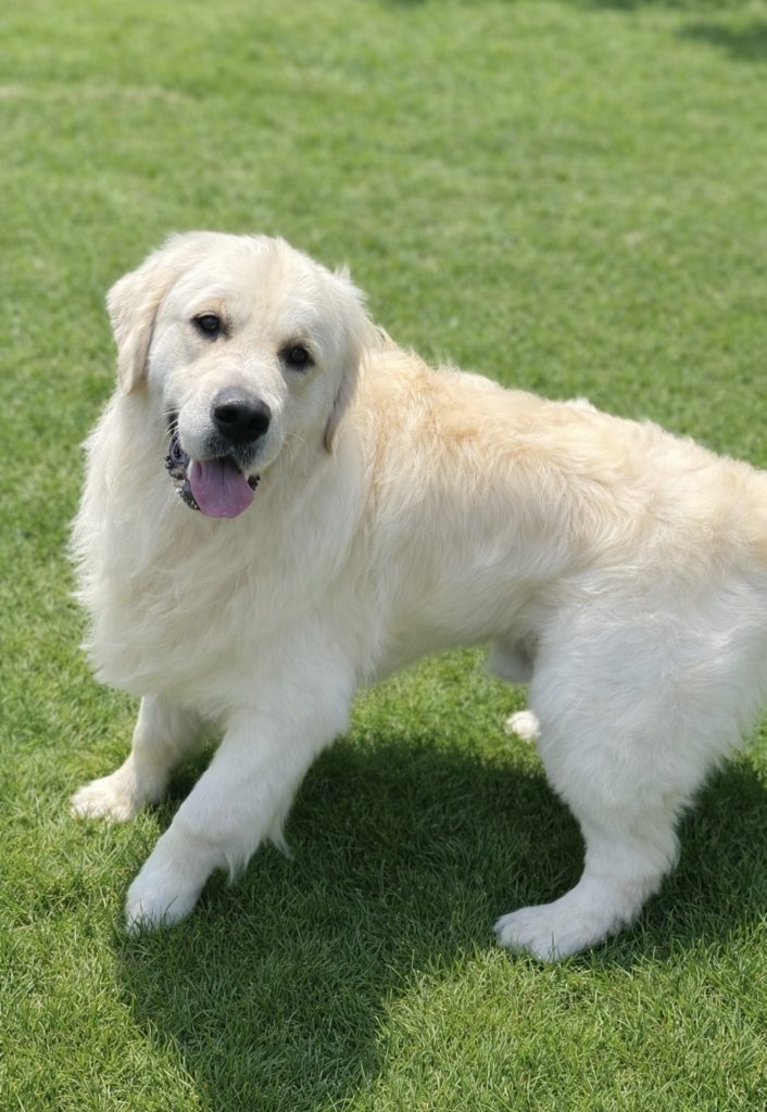 Hank is a substantial male with impressive bone structure, a beautifully blocky head, and a luxurious, thick cream coat that truly sets him apart. His structure, presence, and expression reflect the very best qualities of the English Cream Golden Retriever.