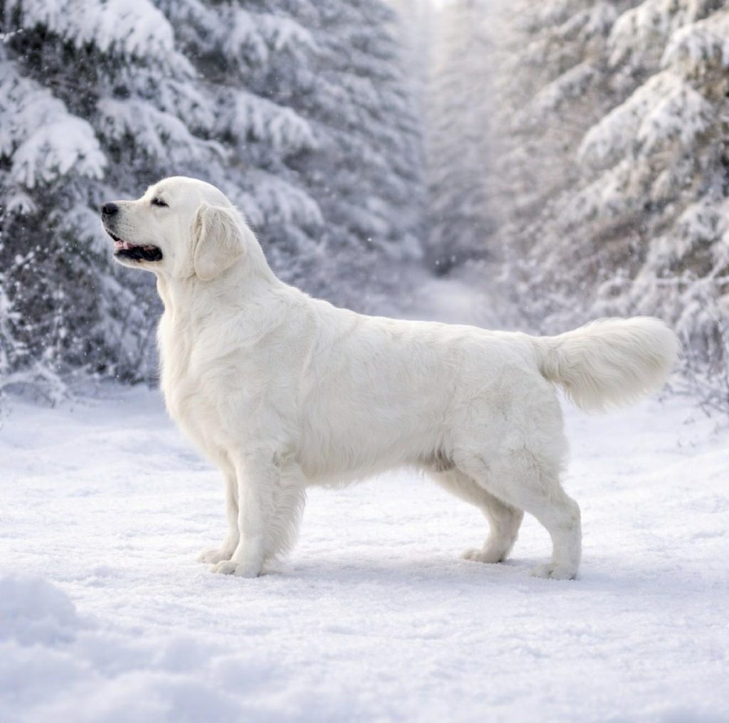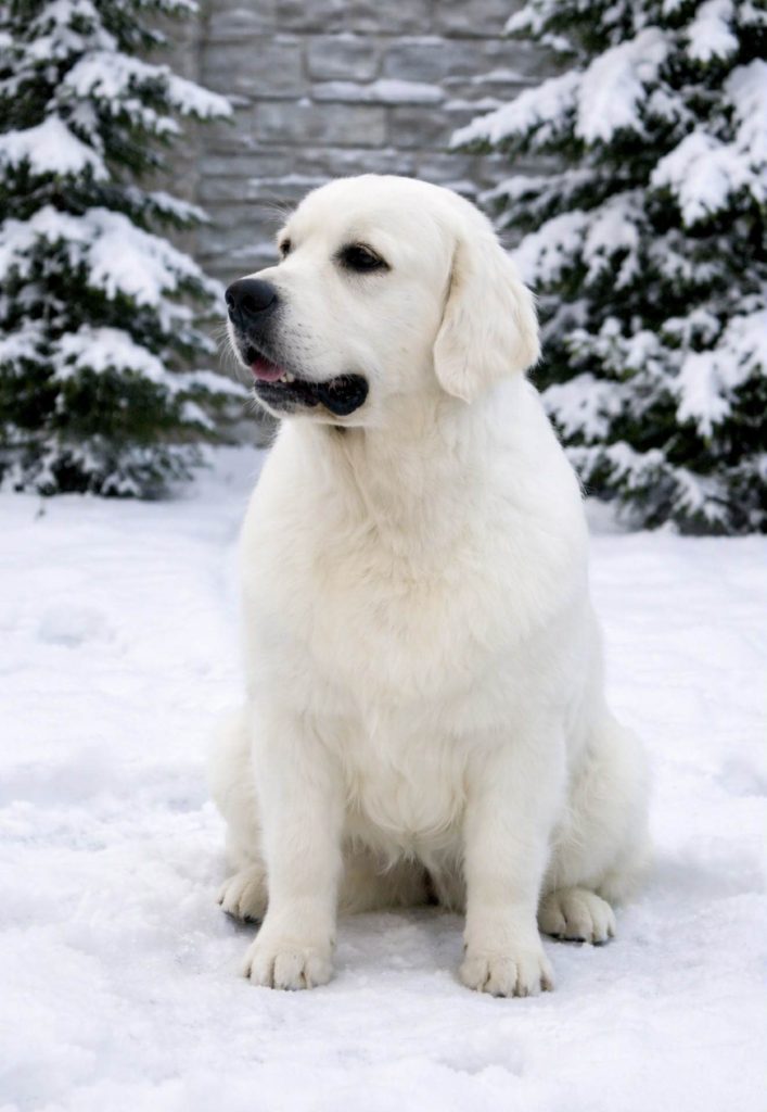 Waffles is a stunning, stocky English Cream Golden Retriever with a gorgeous blocky head, a thick cream coat, and a beautifully stout build. She is everything we love about the breed.